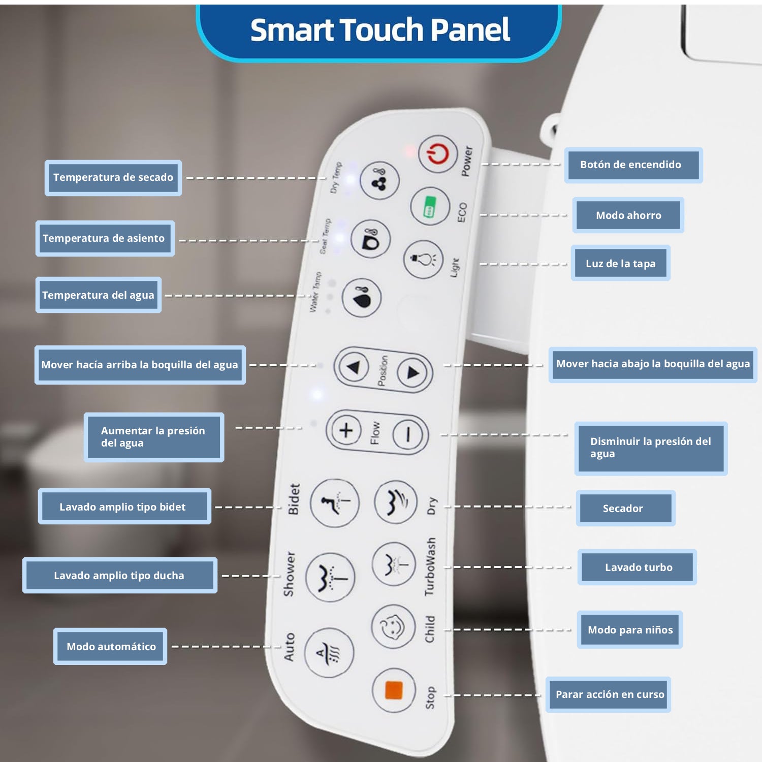 Asiento electrónico para inodoro de última generación con esterilización, calefacción y secado por aire caliente, diseñado para ofrecer higiene, confort y comodidad en el uso diario.